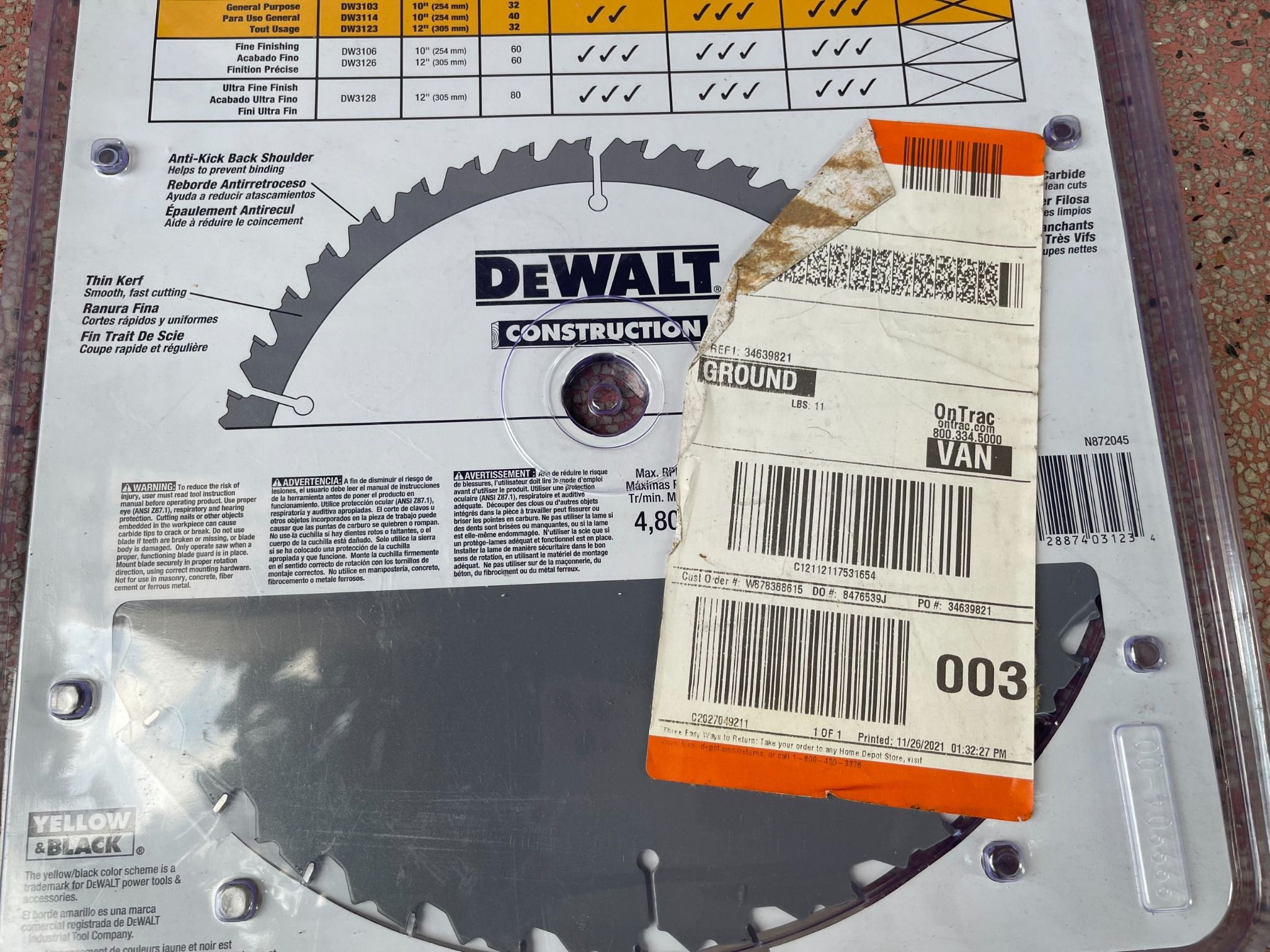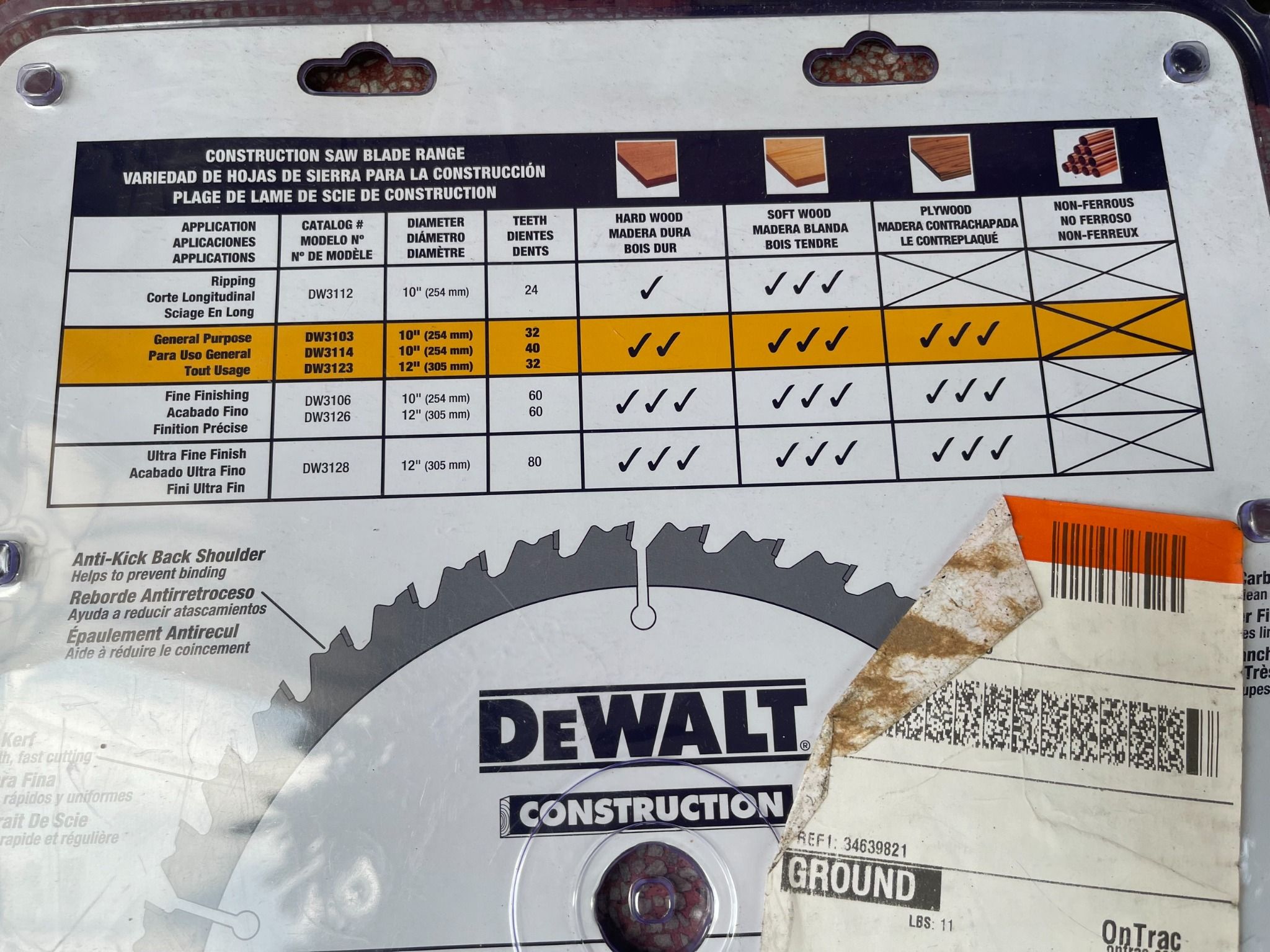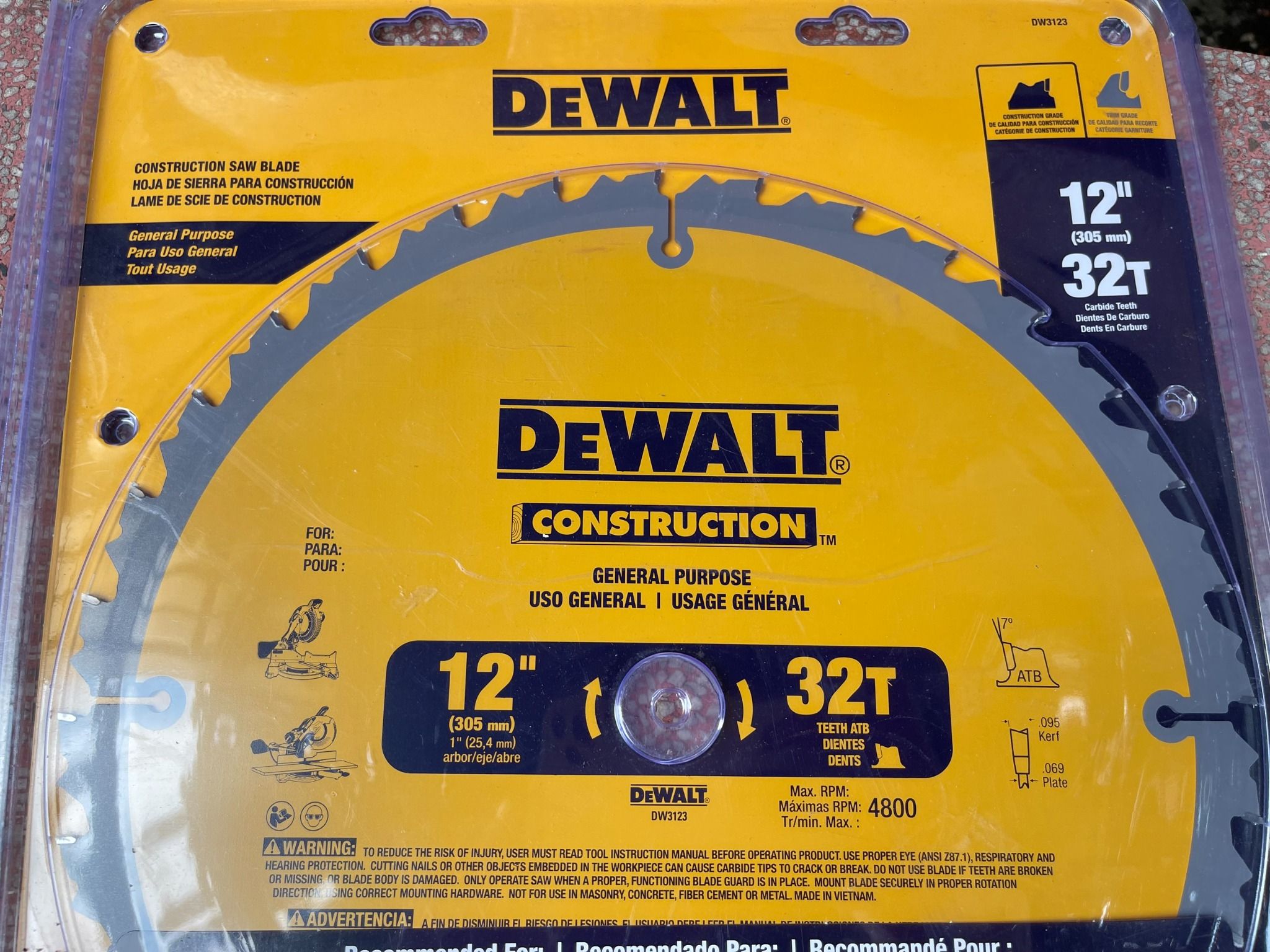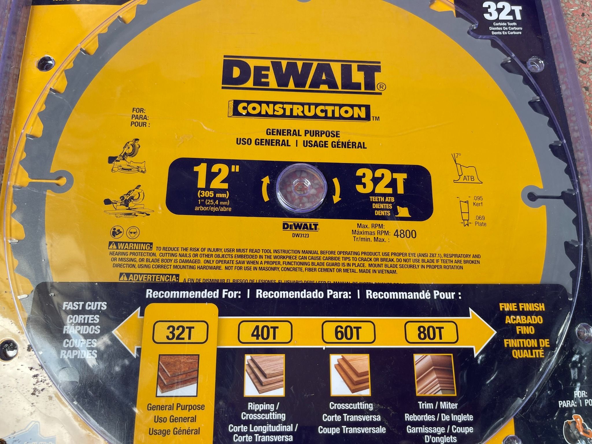 DEWALT DW3123 Series 20 12-Inch 32 Răng ATB Thin Kerf Lưỡi cưa đa năng với Arbor 1-Inch