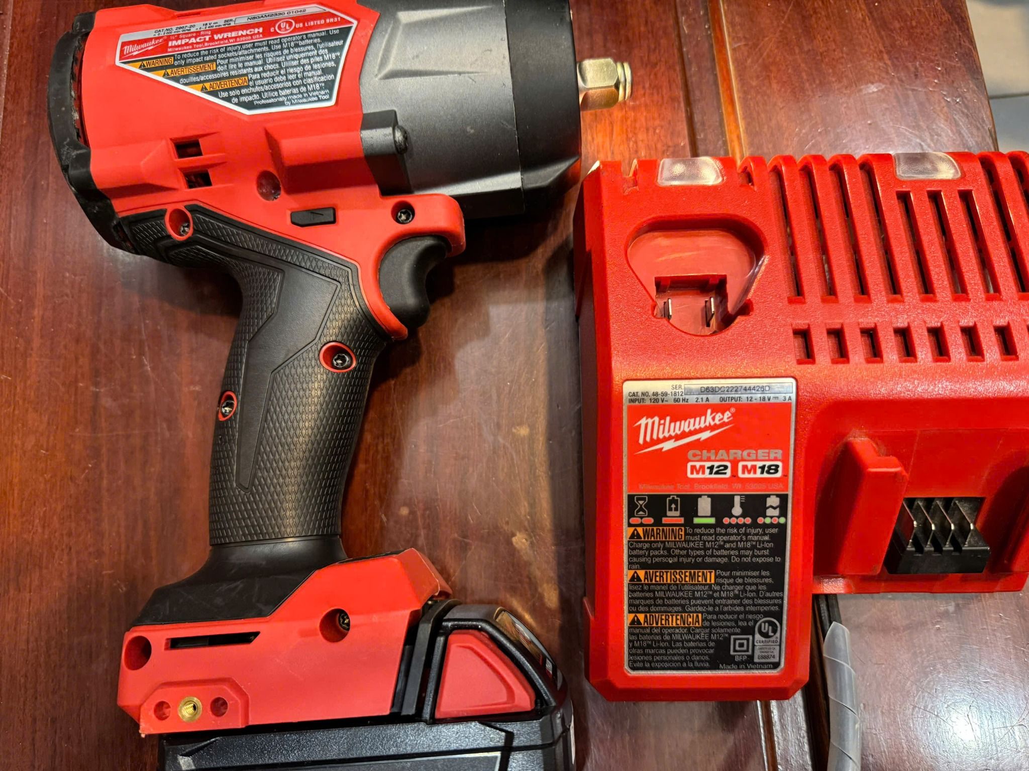Máy bù lông Milwaukee 2967 M18 khẩu 1/2 lức khủng long pin 5ah , sạc 220v