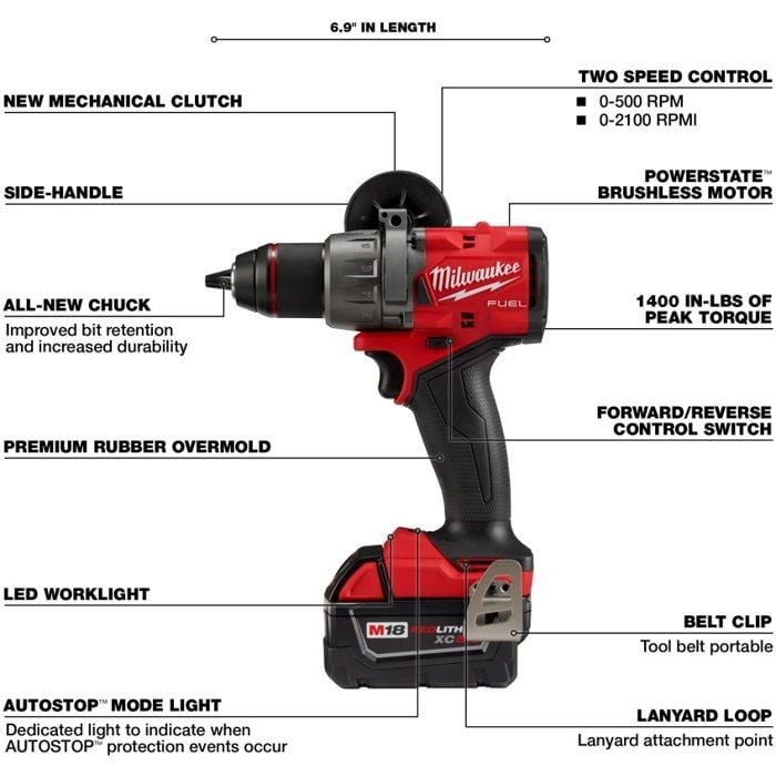 Máy khoan búa MILWAUKEE M18 FUEL 1/2 là Máy khoan búa mạnh mẽ nhất trong ngành, mang đến khả năng khoan các lỗ lớn nhất ở tốc độ cao vào các vật liệu dày đặc nhất. Máy khoan không dâylà giải pháp Nhỏ gọn nhất trong phân khúc và có Chế độ Điều khiển Tự động dừng để Nâng cao An toàn. Động cơ không chổi than POWERSTATE cung cấp công suất tối đa khi chịu tải để hoàn thành các lỗ tự nạp liệu 2-9 / 16 "trong rừng rậm để tăng năng suất. Chỉ với chiều dài 6,9, đây là máy khoan không dây nhỏ gọn nhất trong cùng loại cho khả năng tiếp cận tốt nhất và khả năng cơ động trong không gian chật hẹp. Chế độ Điều khiển Tự động Dừng mang lại sự an toàn nâng cao cho người vận hành bằng cách ngăn chặn việc quay vòng quá mức trong một liên kết với thời gian phản ứng tốt nhất trong ngành. REDLINK PLUS thông minh đảm bảo hiệu suất tối đa và bảo vệ khỏi quá tải, nóng và quá tải - xả. Bộ pin MILWAUKEE M18 REDLITHIUM mang lại nhiều công việc hơn cho mỗi lần sạc và làm được nhiều việc hơn trong suốt thời gian sử dụng của bộ so với các đối thủ cạnh tranh. Mâm cặp bằng kim loại là loại tốt nhất trong phân khúc.