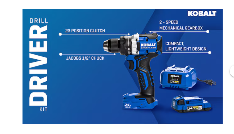 thế hệ mới này sử dụng công nghệ điện tử và động cơ tiên tiến nhất để cung cấp mô-men xoắn lên đến 850 in-lb và hiệu năng mạnh mẽ, đáp ứng mọi công việc. Kích thước nhỏ gọn cho phép người dùng dễ dàng sử dụng dụng cụ trong không gian hẹp. Kích thước nhỏ gọn giúp dụng cụ nhẹ hơn, tối đa hóa năng suất và giảm mệt mỏi cho người dùng trong những ngày làm việc dài. Tay cầm được thiết kế mới với lớp phủ mềm mại mang lại sự thoải mái vượt trội cùng với khả năng cân bằng được cải thiện, biến dụng cụ này trở thành lựa chọn hàng đầu cho mọi công việc. Máy khoan vặn vít Kobalt được trang bị hộp số cơ khí 2 tốc độ; Tốc độ 1 cung cấp 550 vòng/phút, trong khi tốc độ 2 cung cấp 2000 vòng/phút. Vỏ hộp số bằng kim loại và tay cầm bằng nhựa nylon tối đa hóa độ bền. Đèn LED sáng được đặt ở chân dụng cụ để chiếu sáng vật cần khoan. Máy khoan vặn vít Kobalt bao gồm đầu kẹp mũi khoan có bánh răng 1/2 inch bằng kim loại cao cấp hiệu Jacobs để tăng độ bền. Bao gồm giá đỡ mũi khoan 2 vị trí và kẹp thắt lưng bằng kim loại với các vị trí lắp đặt ở cả hai bên của dụng cụ. Tay cầm phụ bằng kim loại với tay cầm thoải mái được bao gồm để tăng độ an toàn trong trường hợp mũi khoan bị kẹt. Túi đựng mềm đi kèm giúp việc cất giữ và vận chuyển dễ dàng hơn.